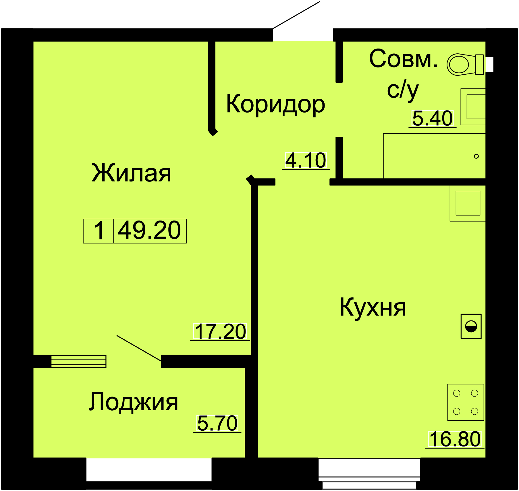 | Площадь: 49.20 м2 | Этаж: 4 |