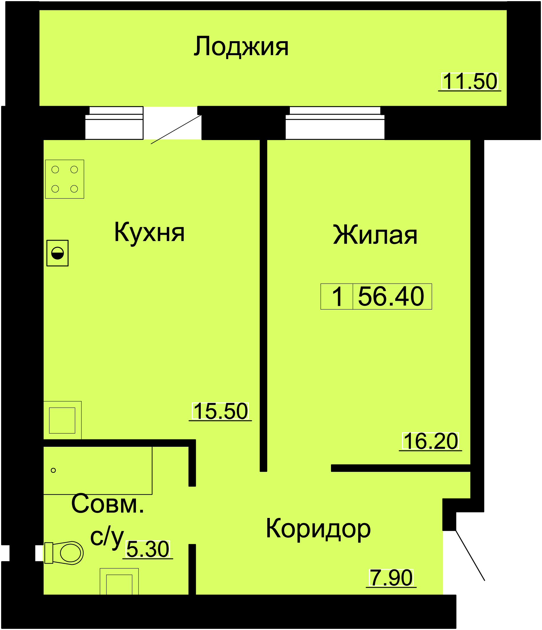 | Площадь: 56.40 м2 | Этаж: 4 |