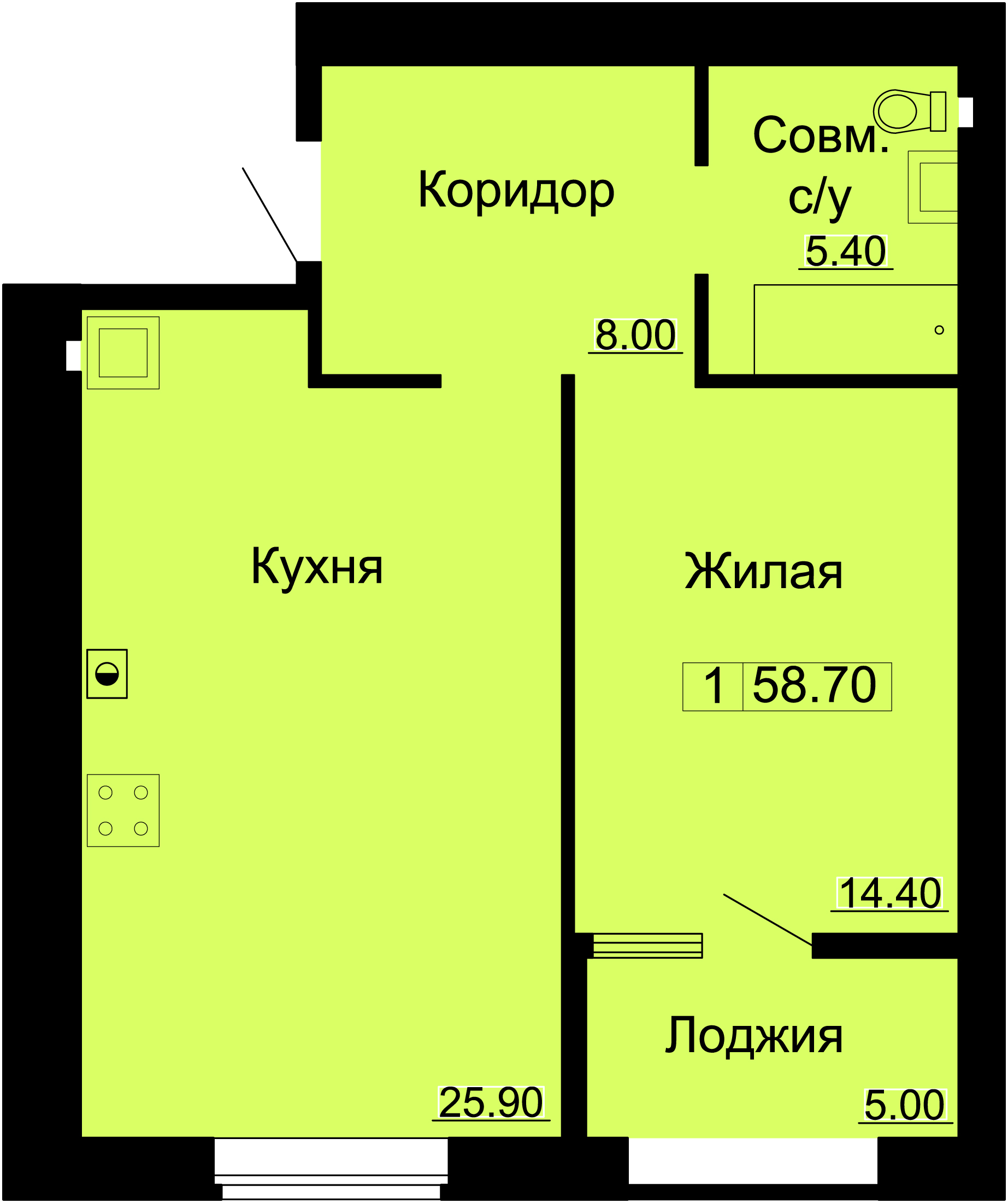 | Площадь: 58.70 м2 | Этаж: 7 |