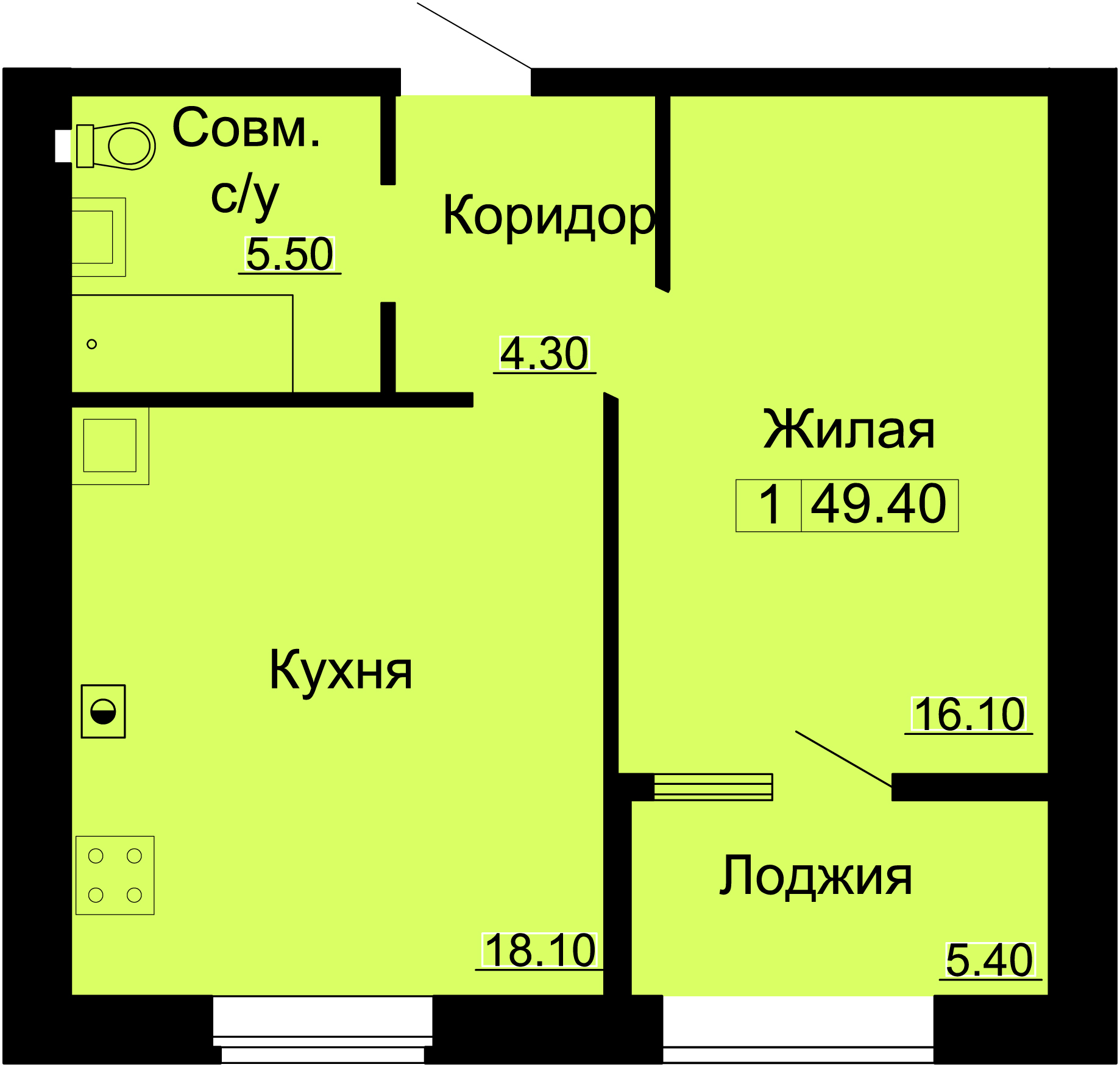 | Площадь: 49.40 м2 | Этаж: 4 |